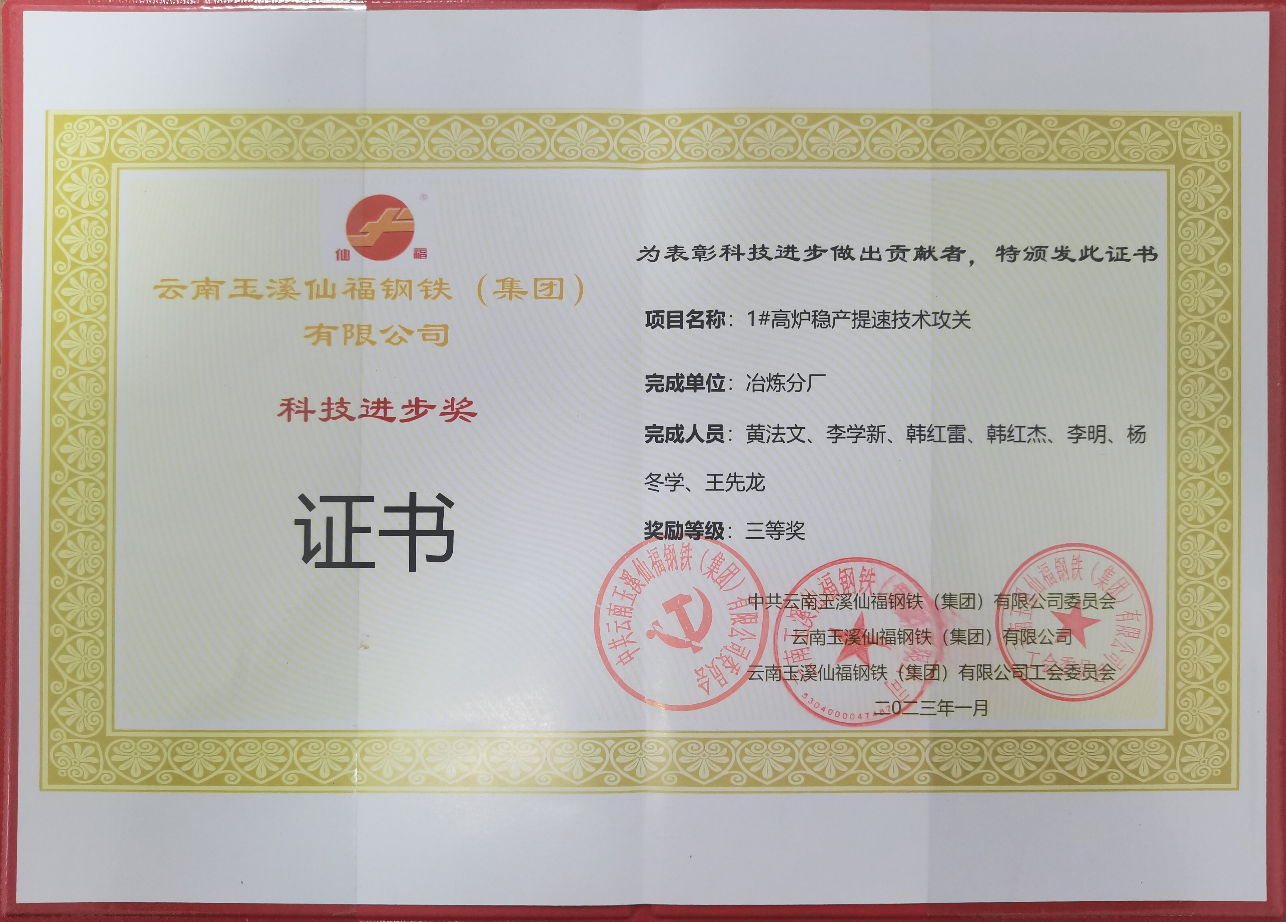 煉鐵廠秉持著科技發(fā)展是第一生產(chǎn)力的理念,認真鉆研、克服困難,通過煉鐵廠全員共同努力,組織攻關的核心技術改造榮獲科技進步獎49項,獲得實用新型專利27項。