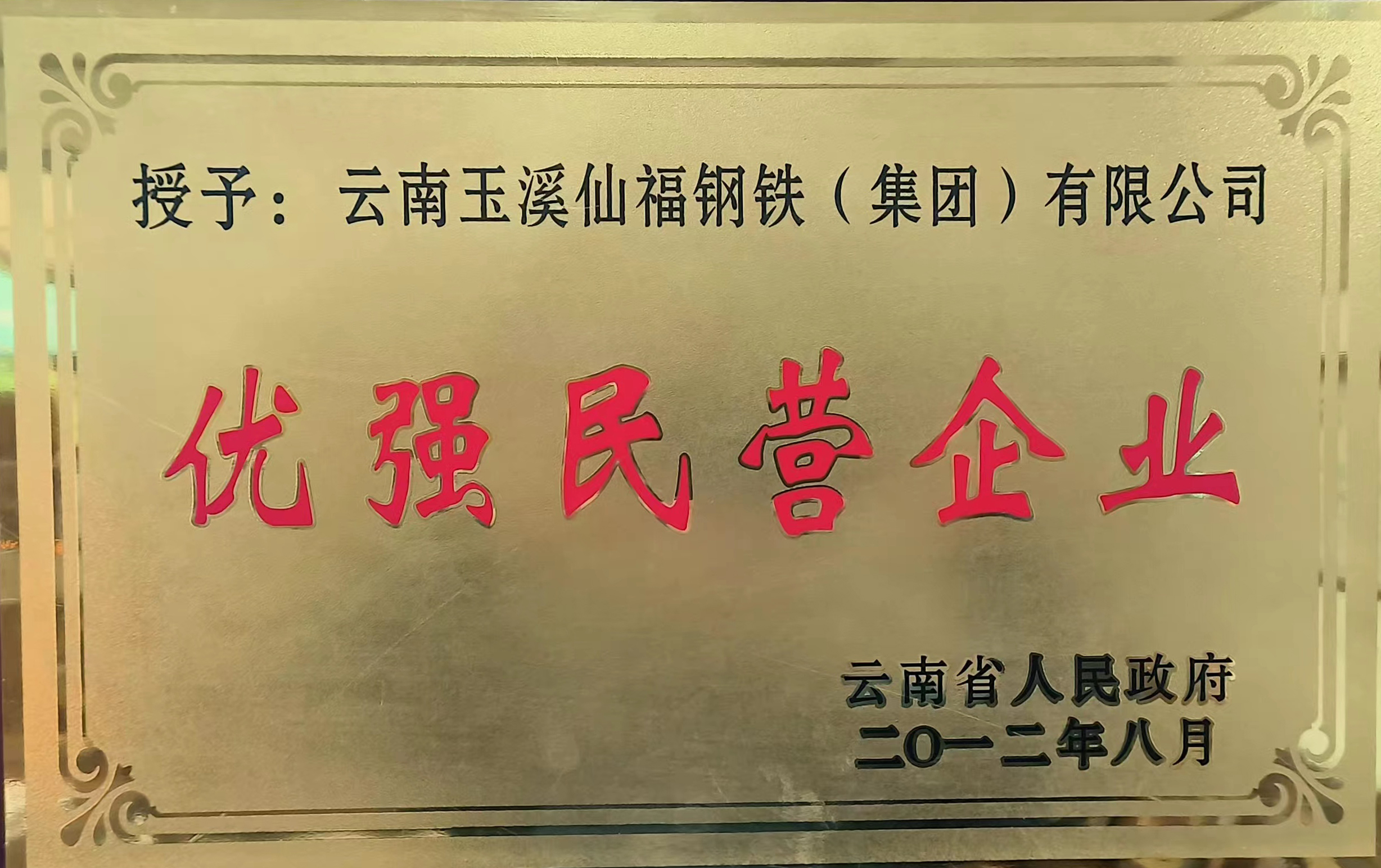 云南省人民政府授予"優(yōu)強民營企業(yè)“榮譽稱號