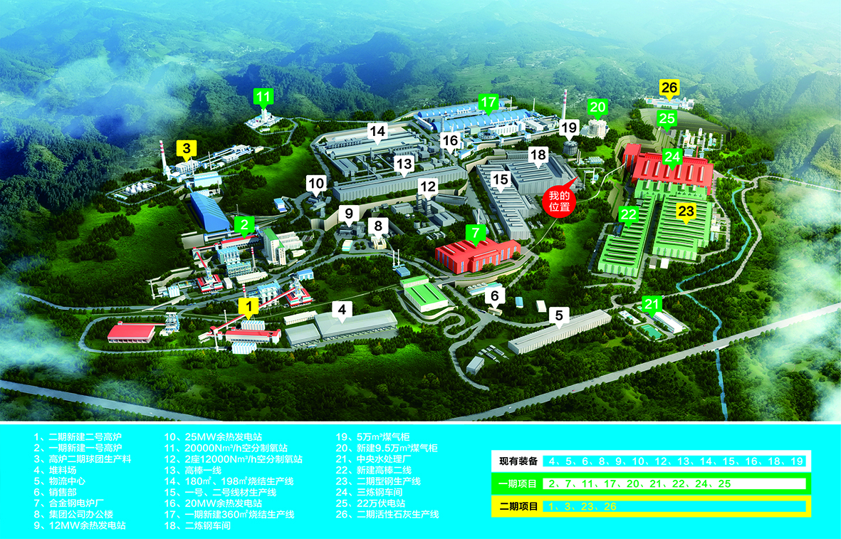 建成360m2燒結(jié)生產(chǎn)線;建成1350m3煉鐵高爐